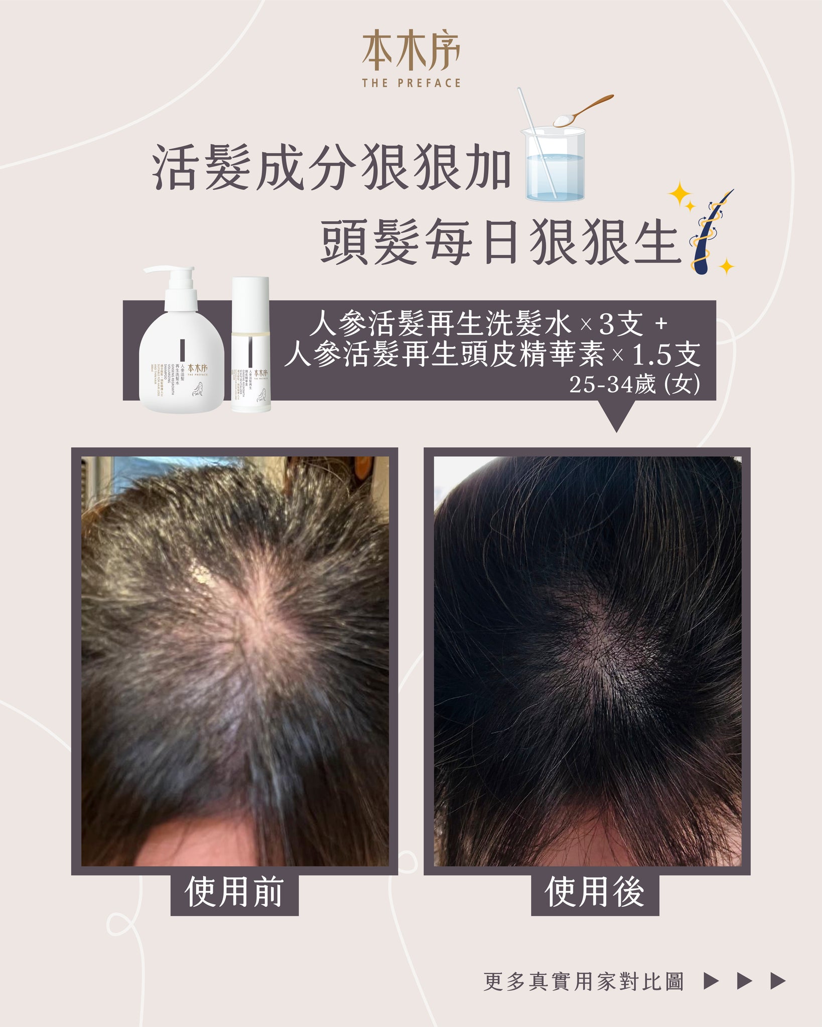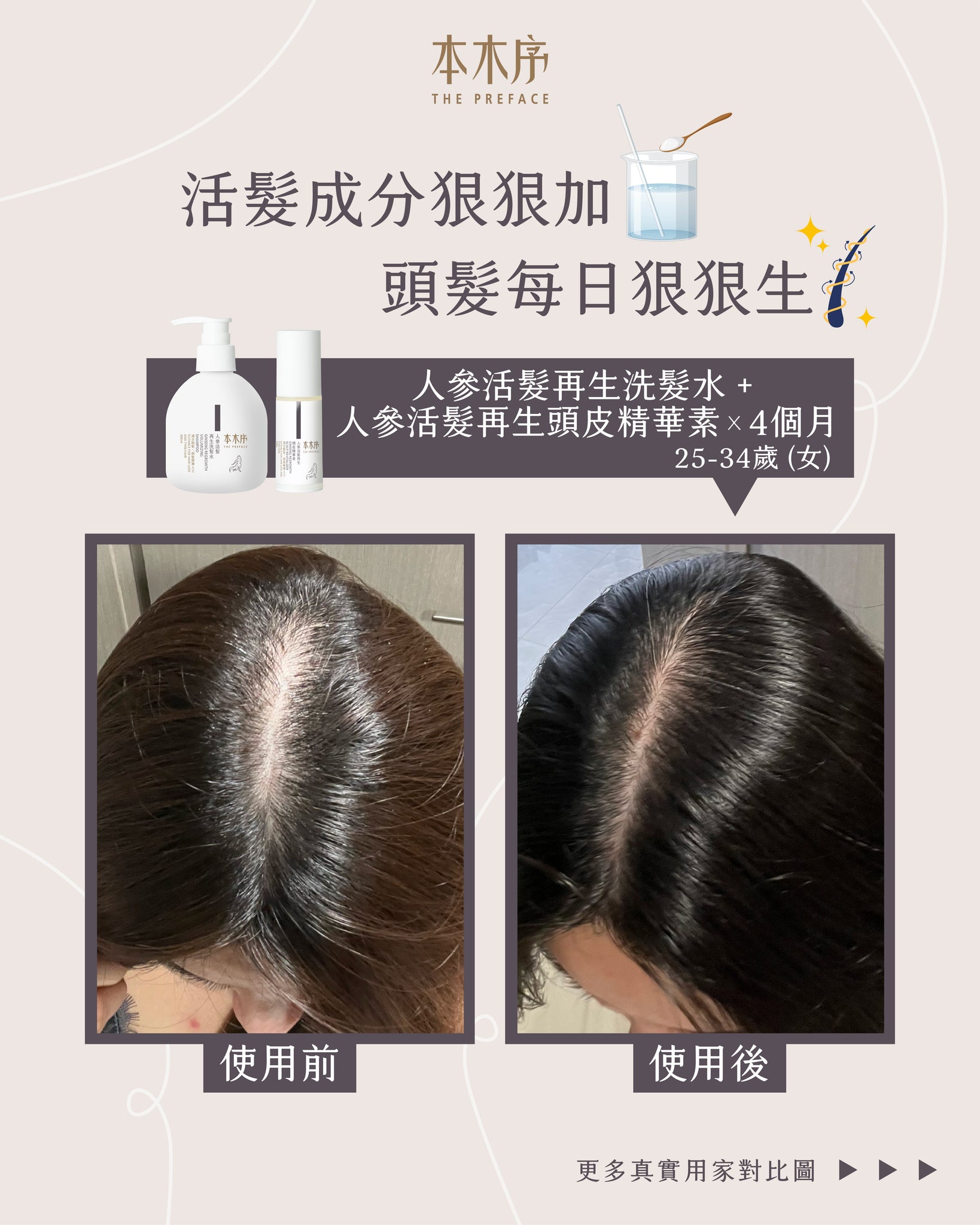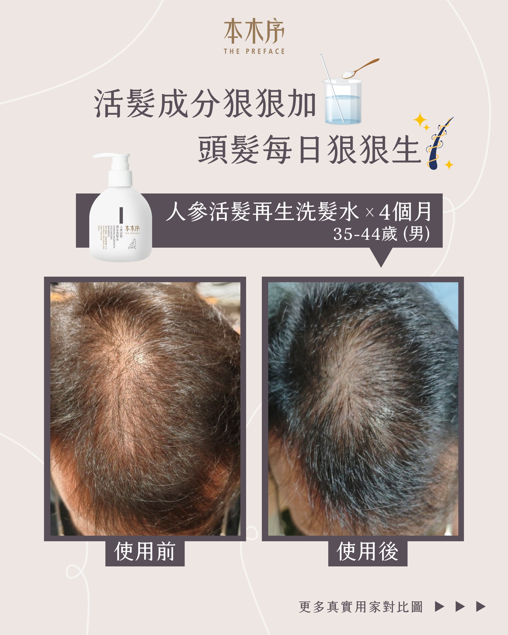 人參活髮再生系列特別適合脫髮、稀薄頭髮。全系列採用活髮防脫之星級成分Kopexil及Kopyrrol,除了活髮外,它更能減少油脂分泌,改善頭皮出油、頭瘡,及頭髮扁蹋問題。可與山茶花柔順系列交替使用,作定期深層清潔用途。