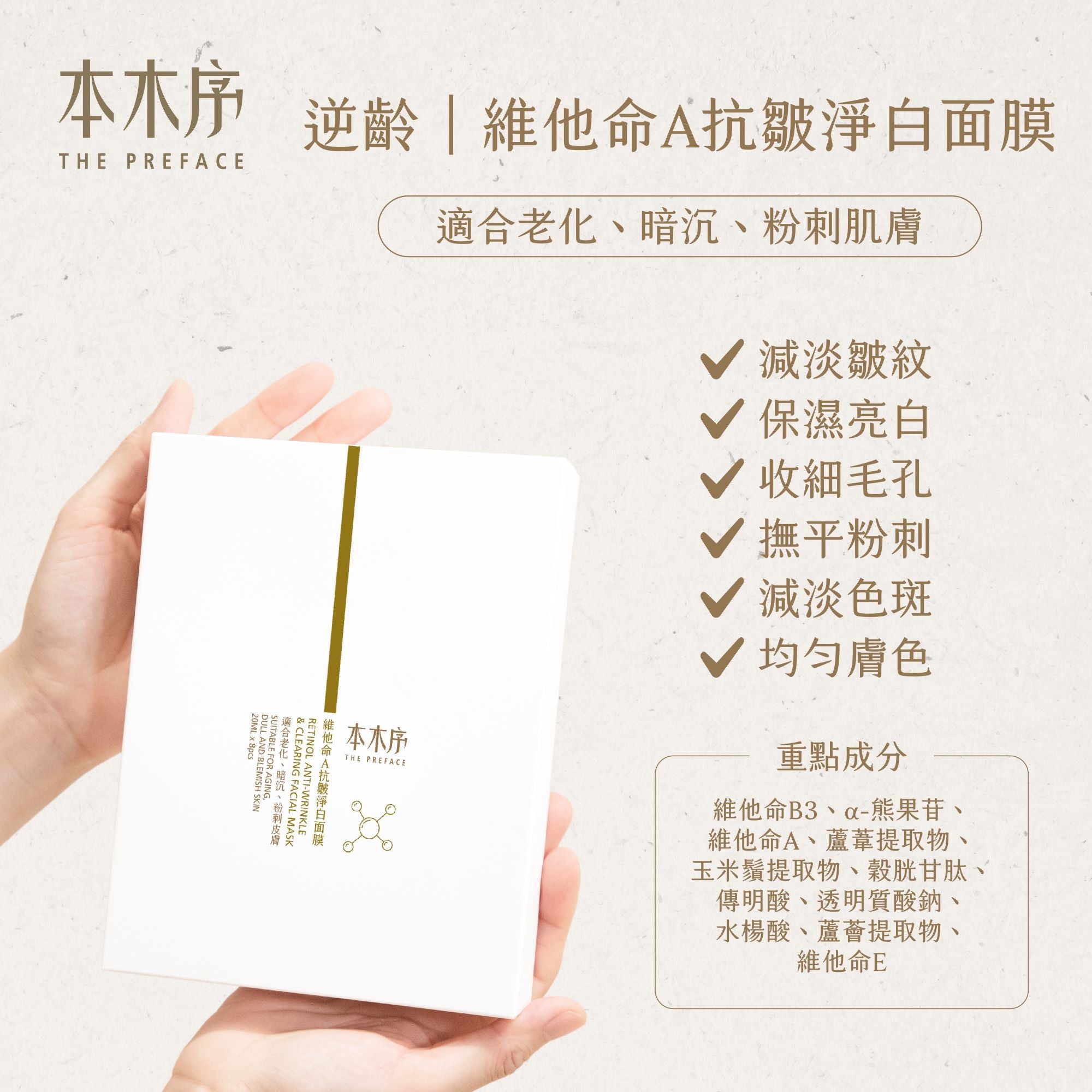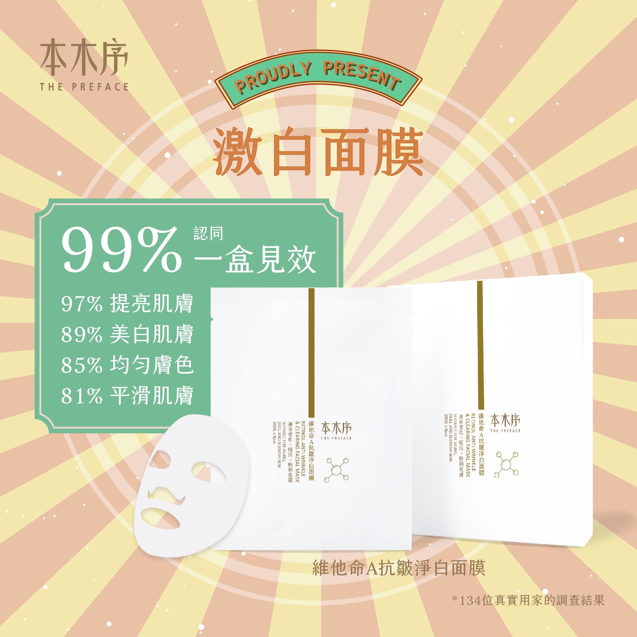 維他命A抗皺淨白面膜 (20ml x 8片)
