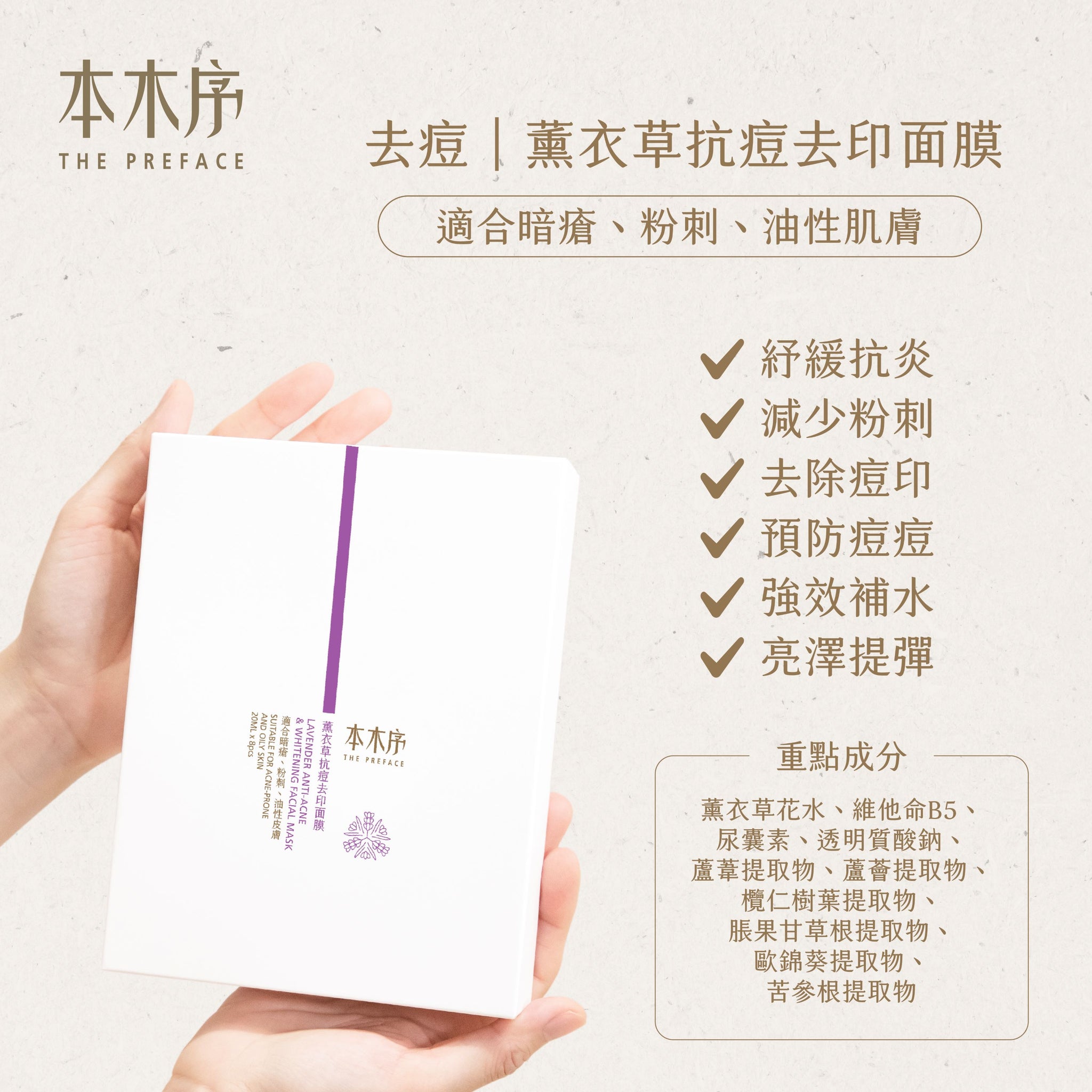 薰衣草抗痘去印面膜 (20ml x 8片)